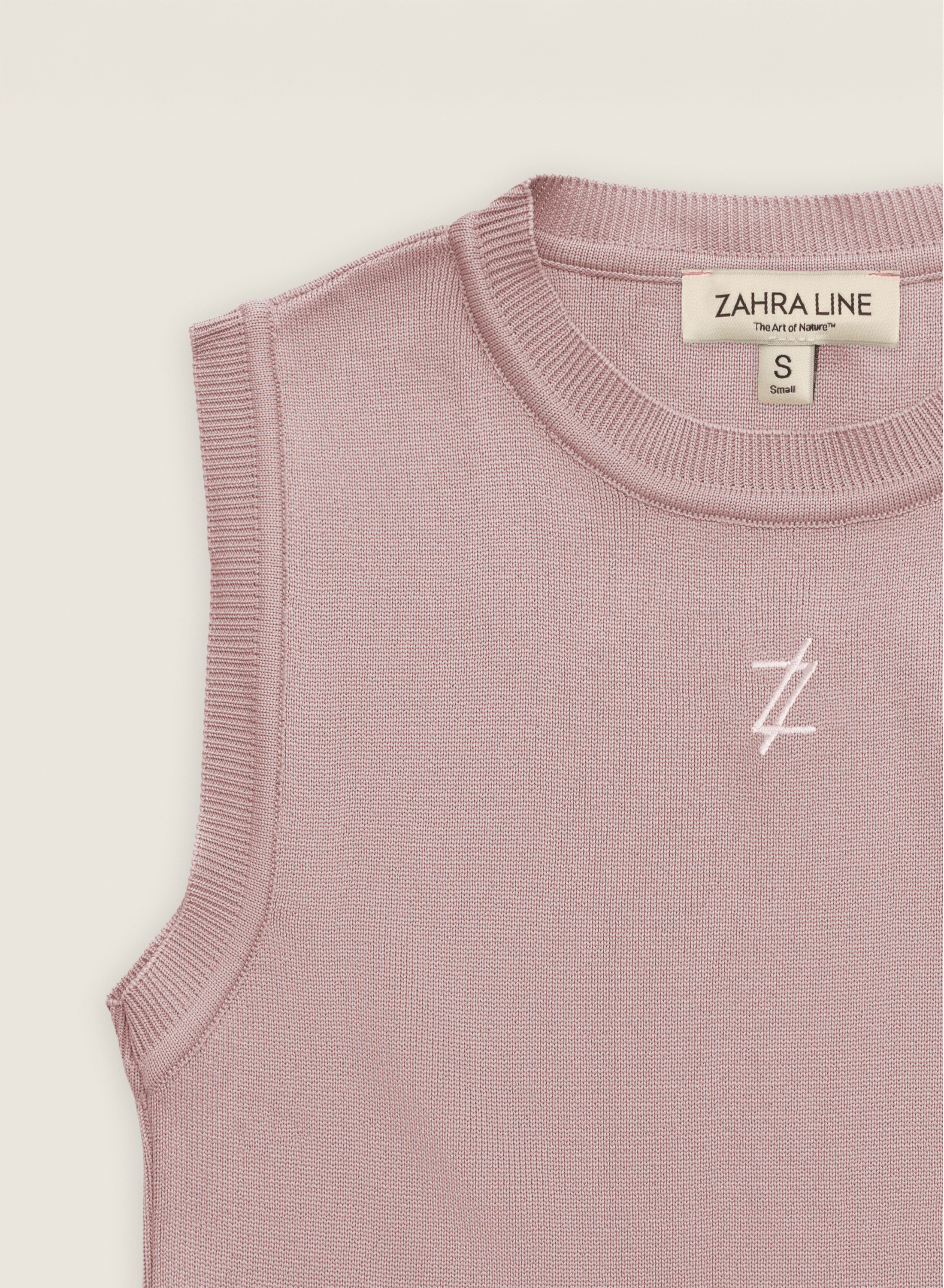Introducing our Comfortable Sleeveless Top in dusty pink with embroidered logo.