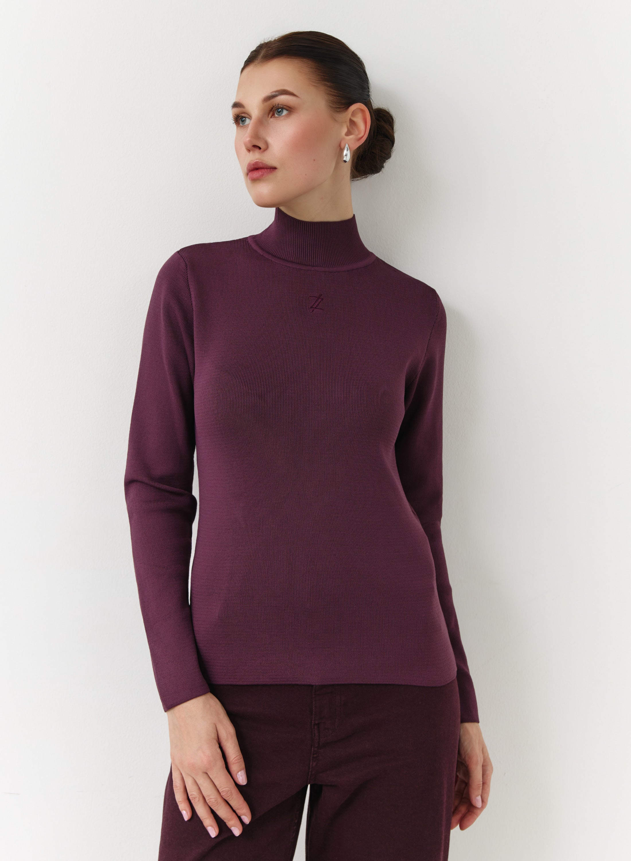 Introducing our High-Neck Long-Sleeve Top in Eggplant, finished with a matching embroidered logo.
