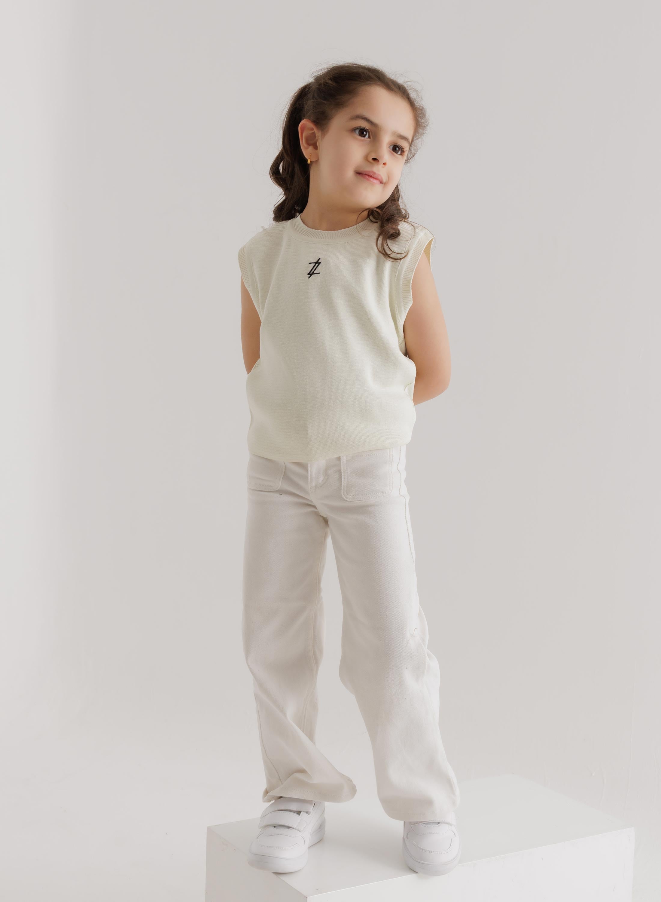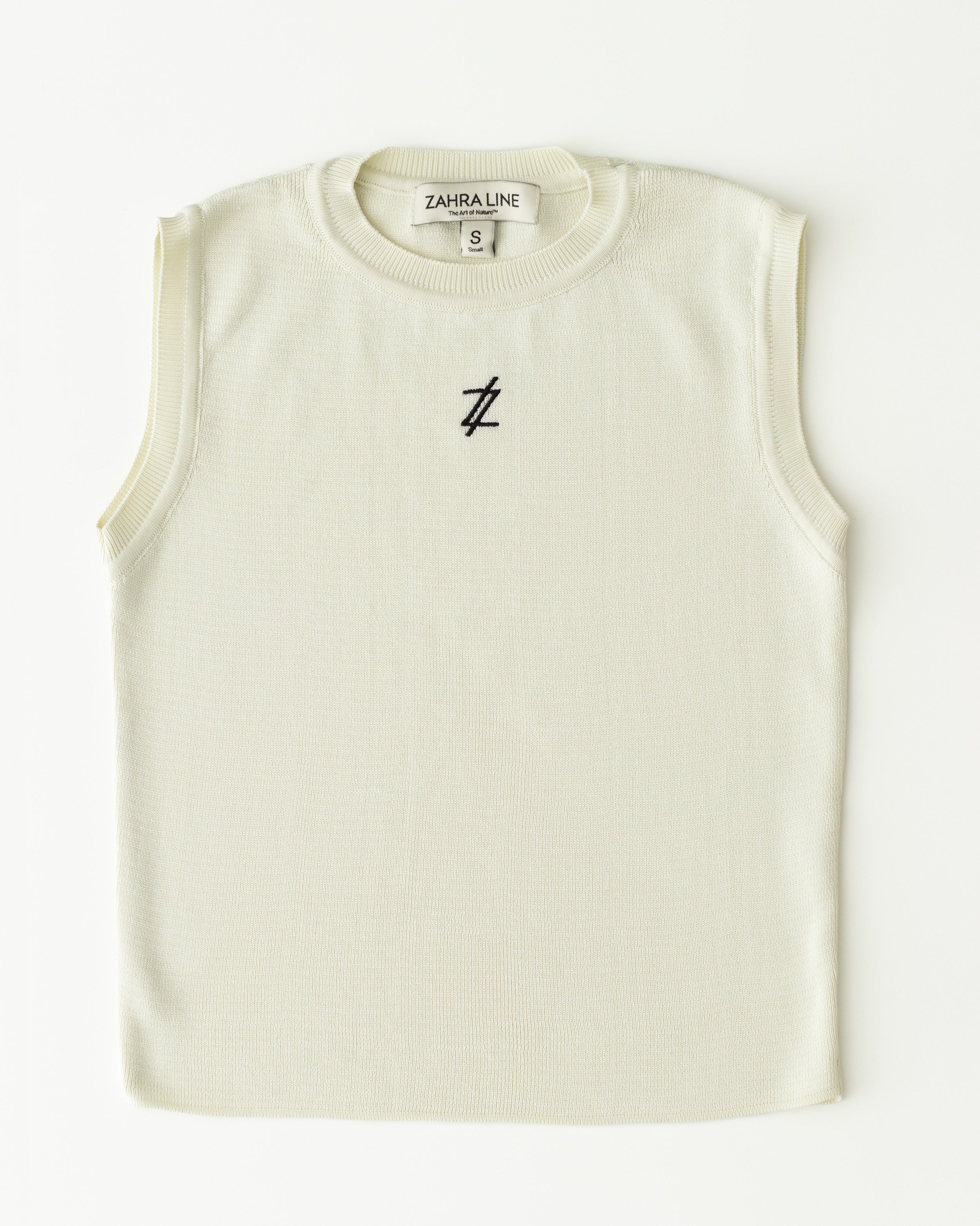 Introducing our Comfortable Sleeveless Top in off-white color with embroidered logo.