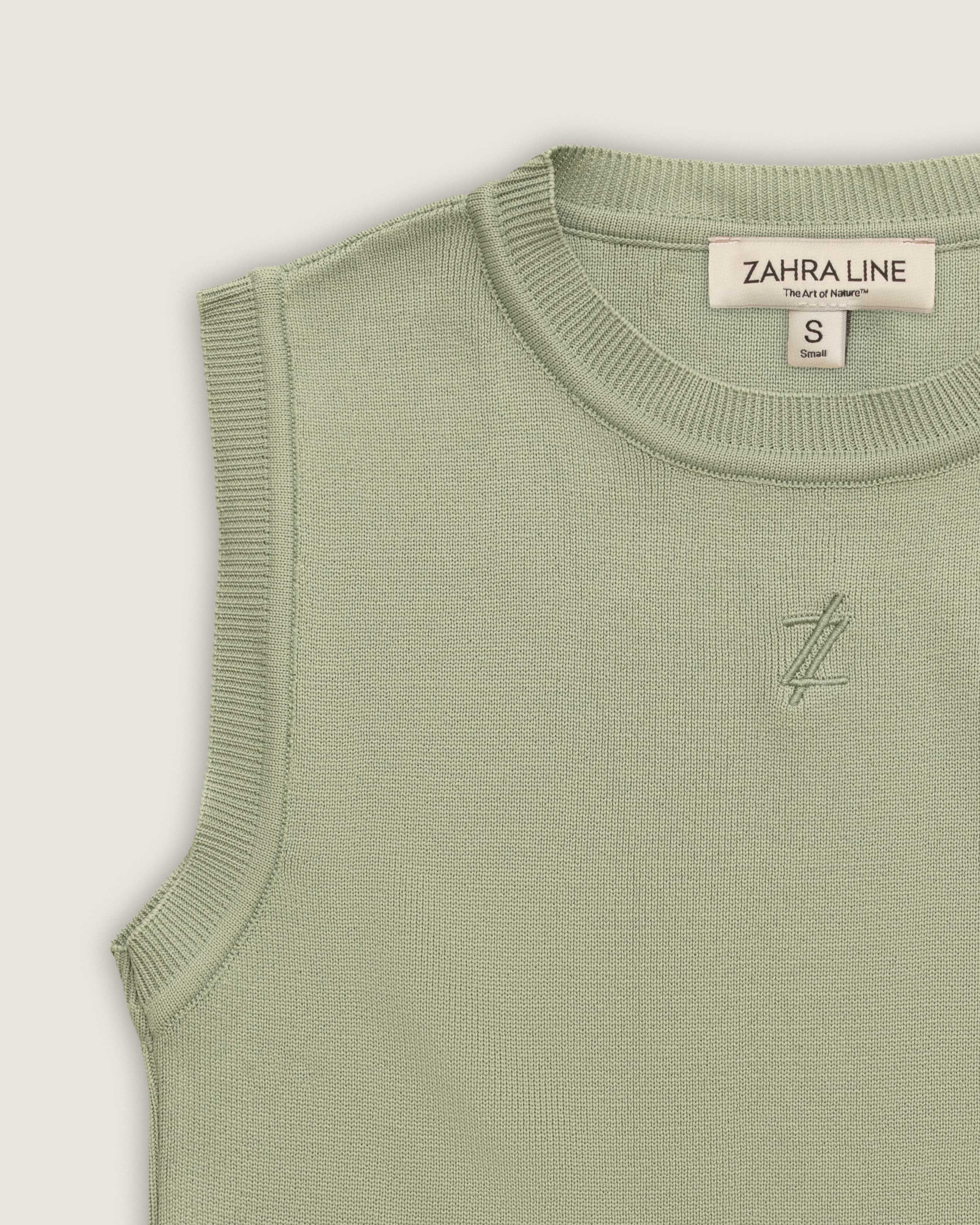 Introducing our Comfortable Sleeveless Top in matcha color with embroidered logo.