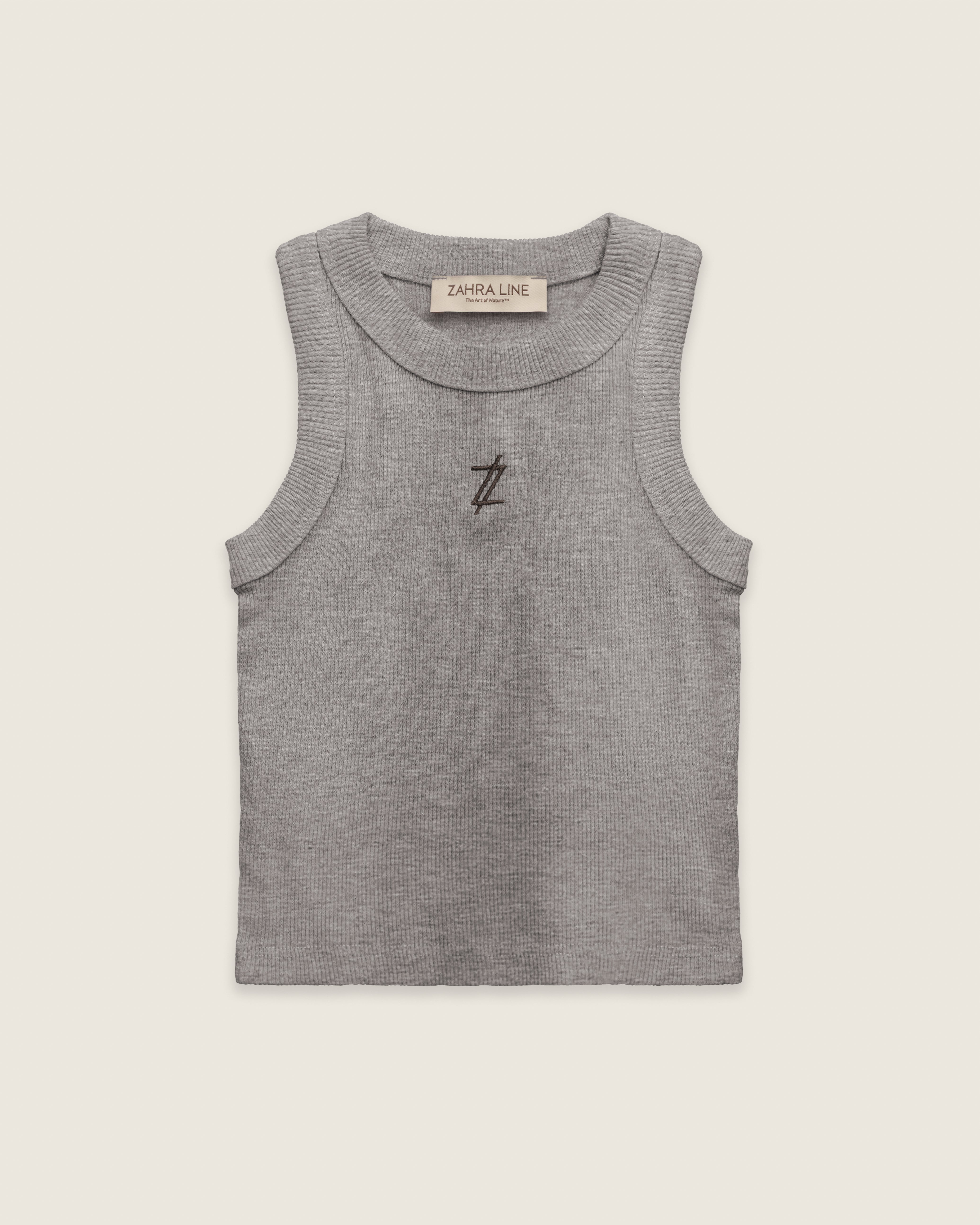 Introducing our Comfortable Sleeveless Top in Gray color with embroidered logo.