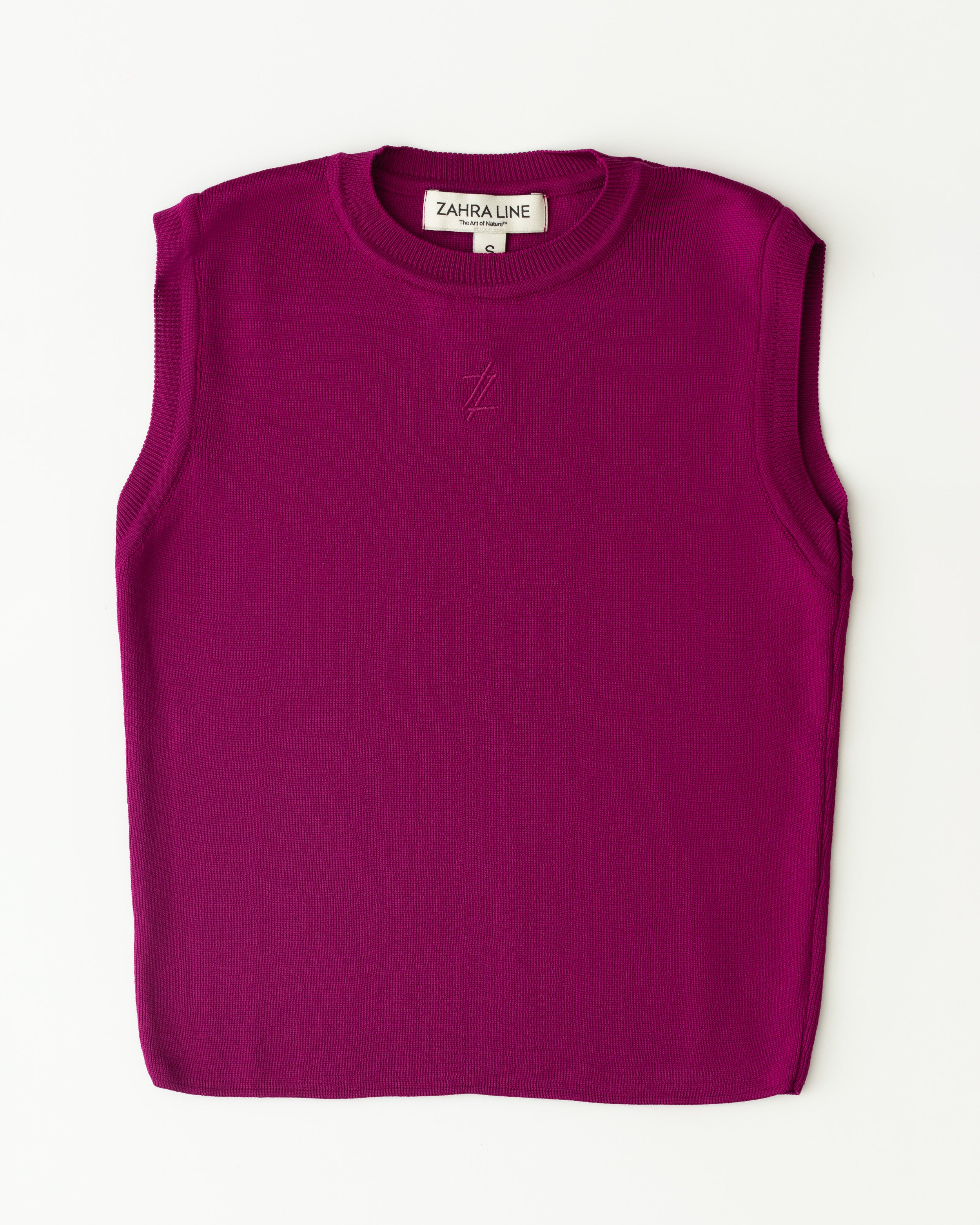 Introducing our Comfortable Sleeveless Top in Magenta color with embroidered logo.
