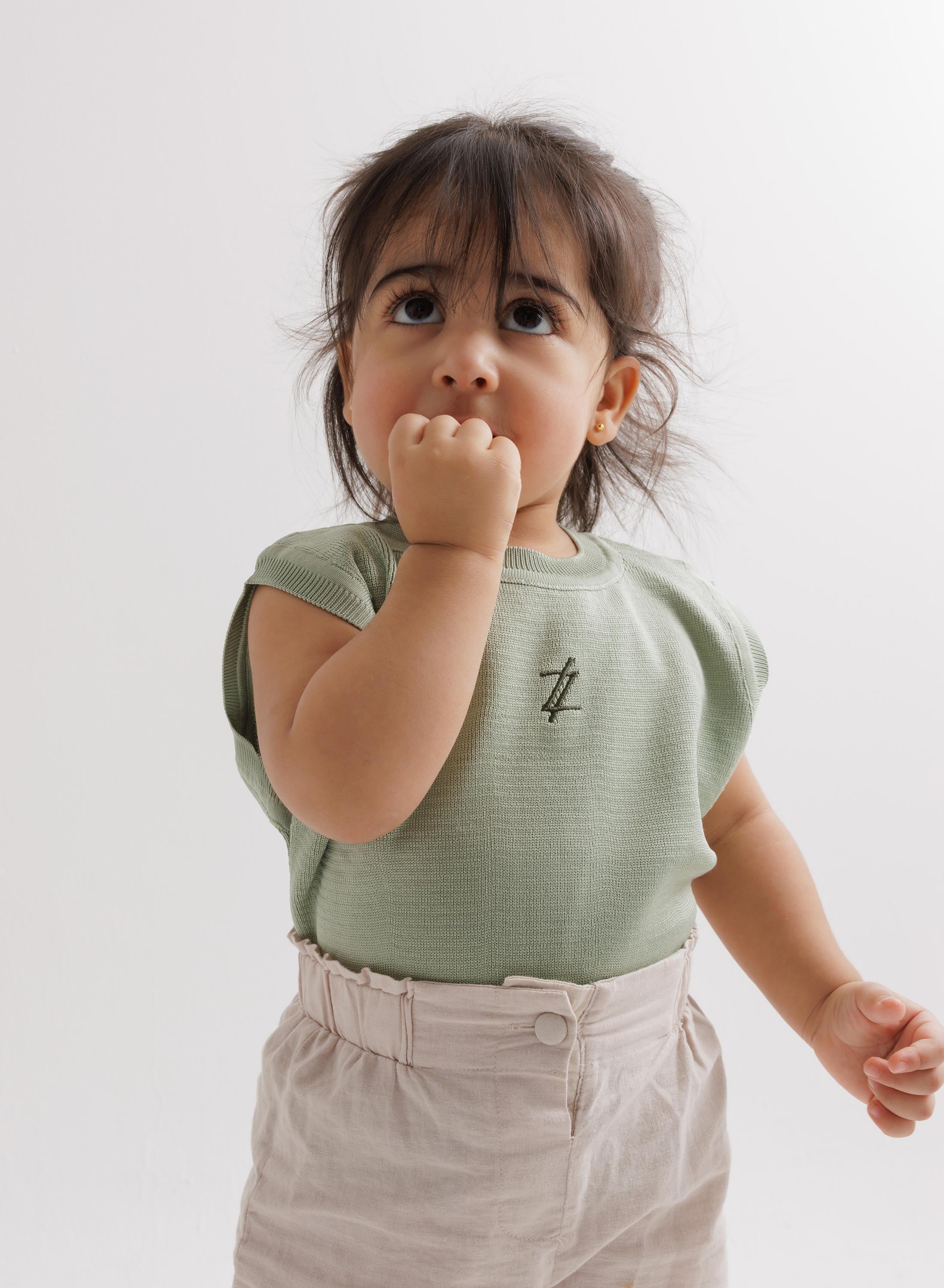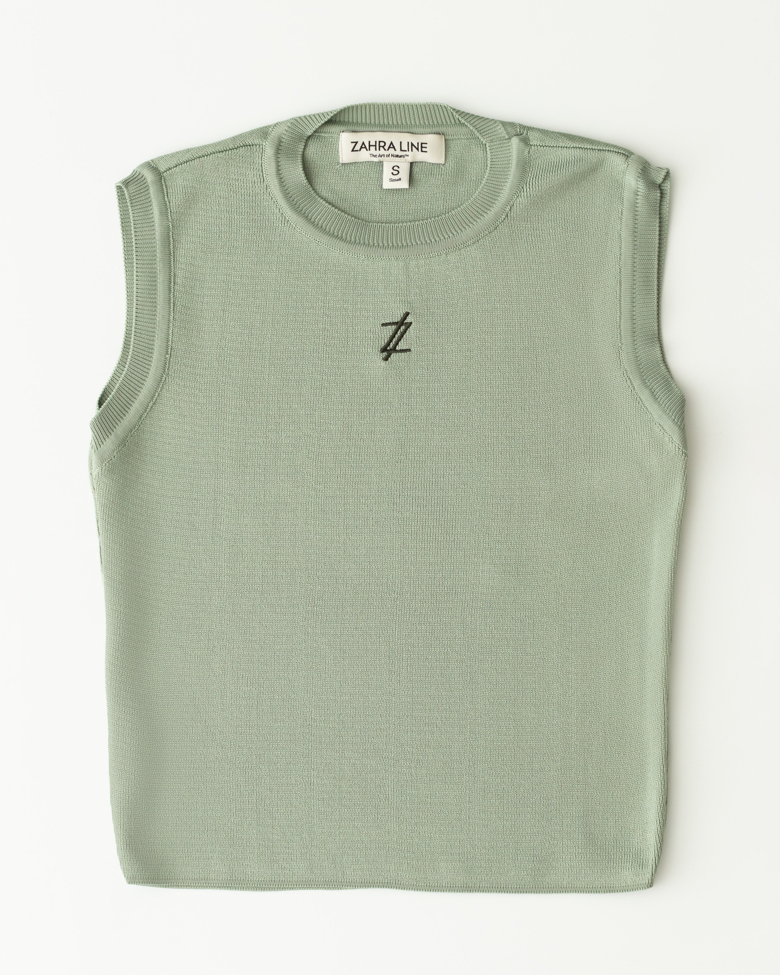 Introducing our Comfortable Sleeveless Top in Matcha color with embroidered logo.
