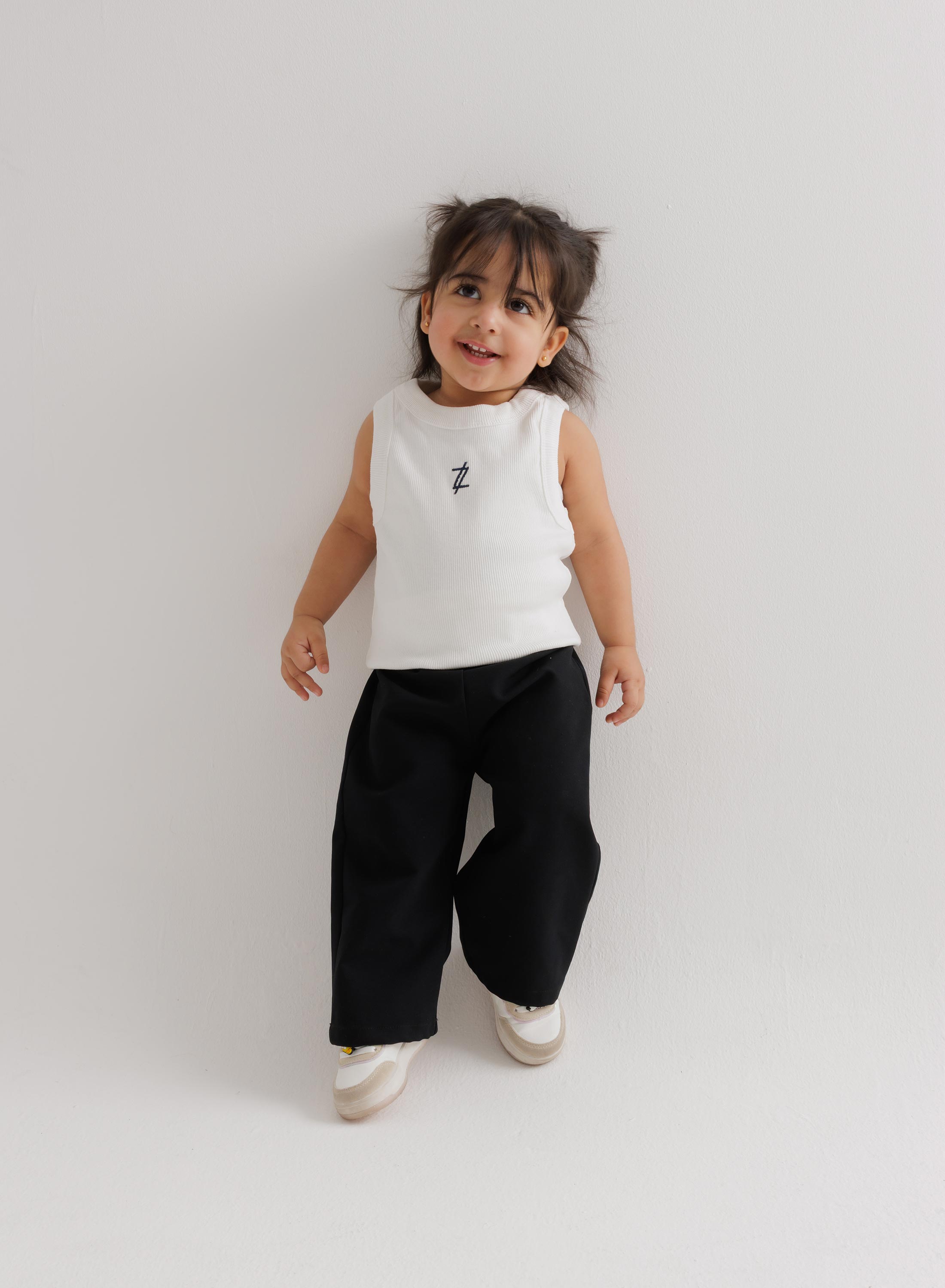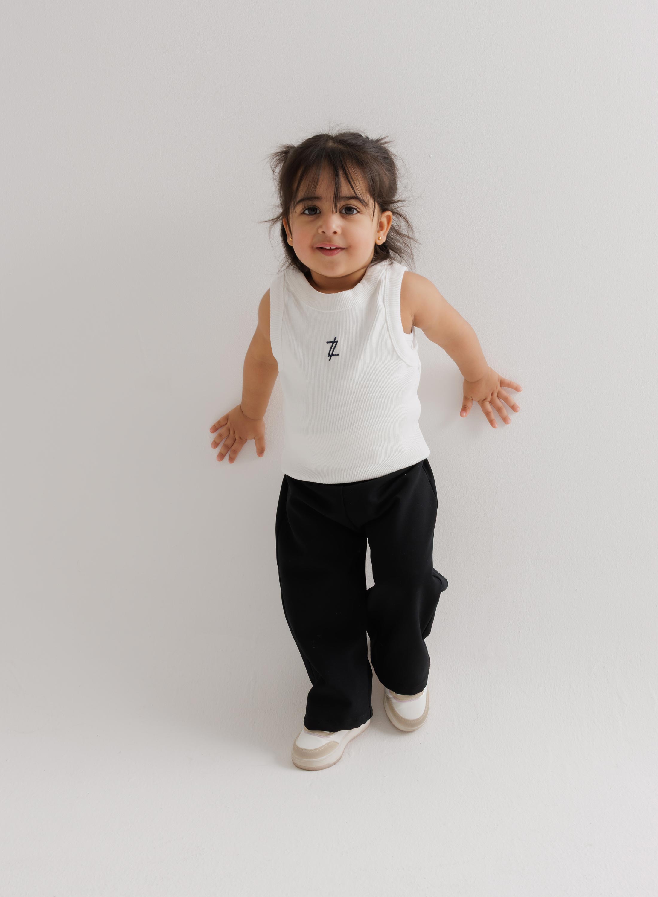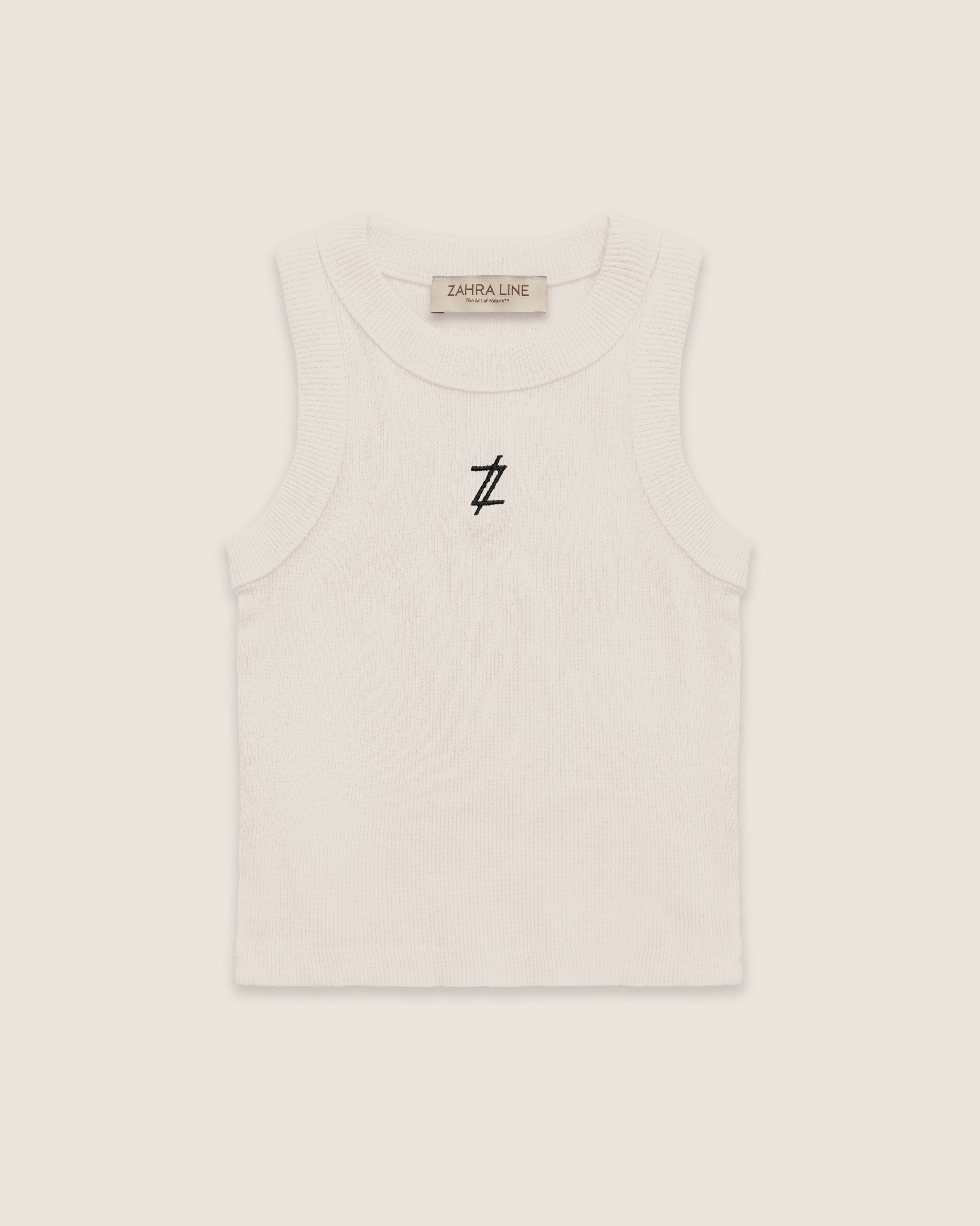 Introducing our Comfortable Sleeveless Top in white color with embroidered logo.