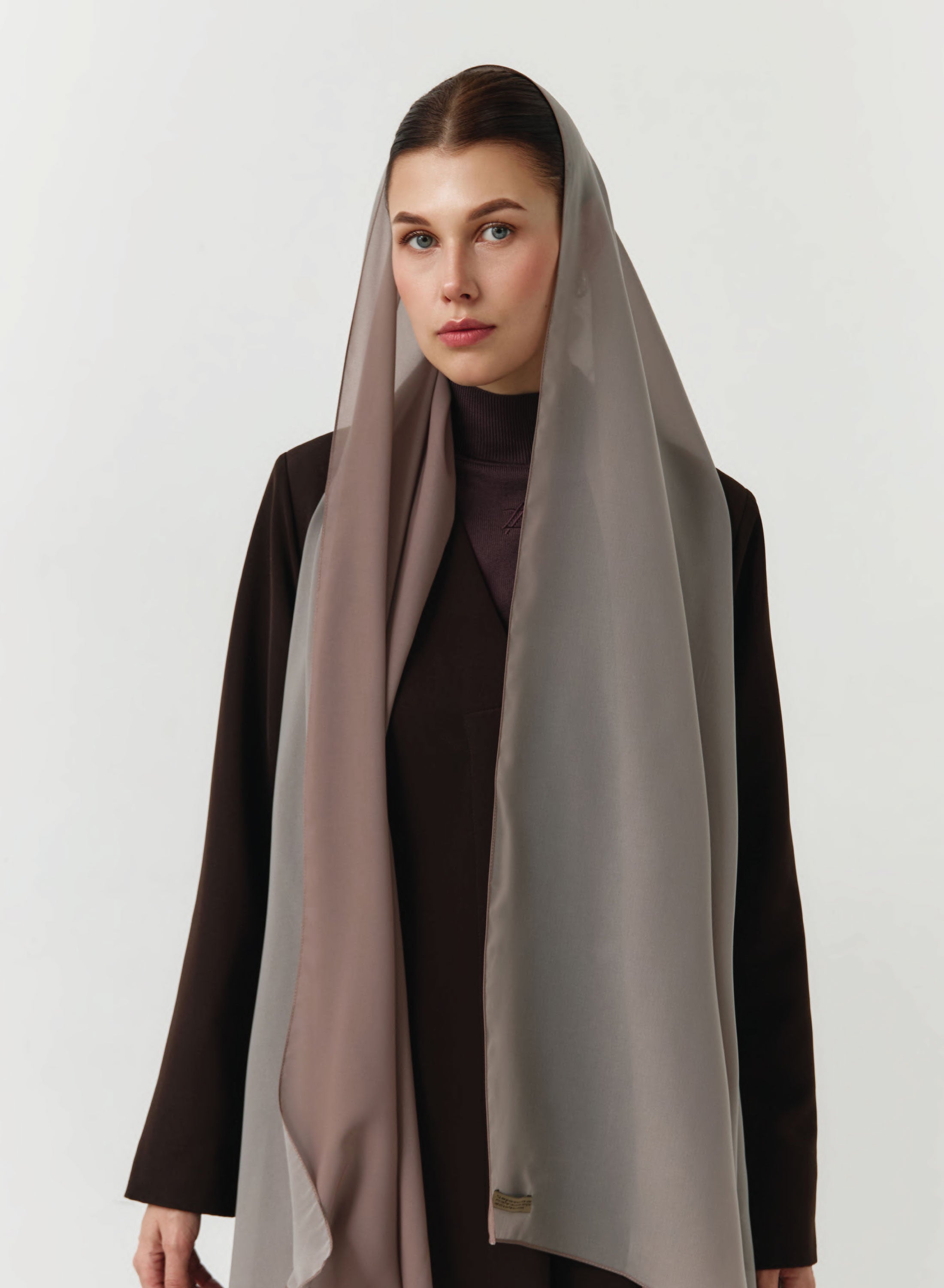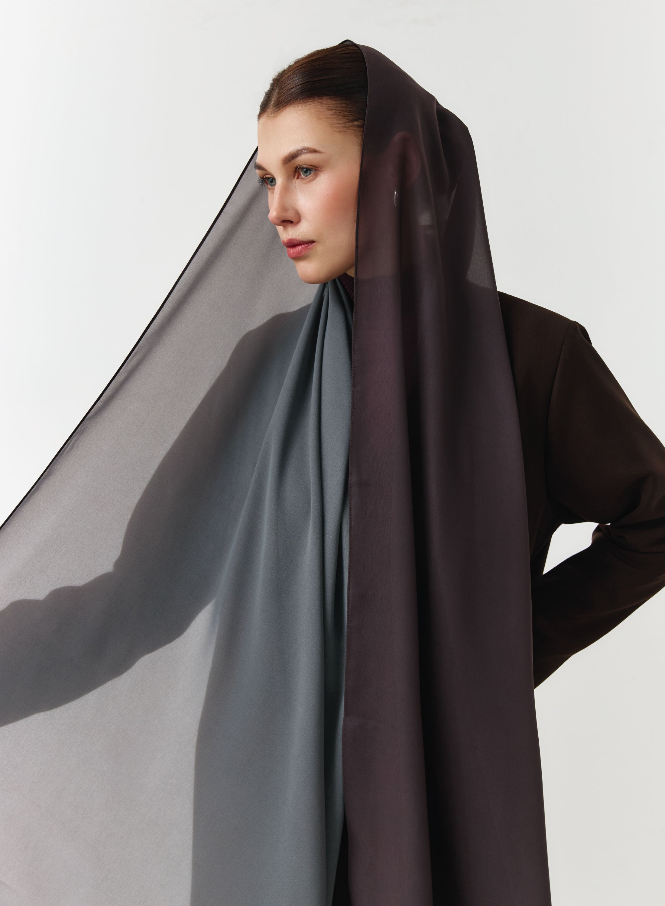 Luxury double-sided chiffon hijab made from the finest Japanese fabric, featuring an elegant two-tone design.