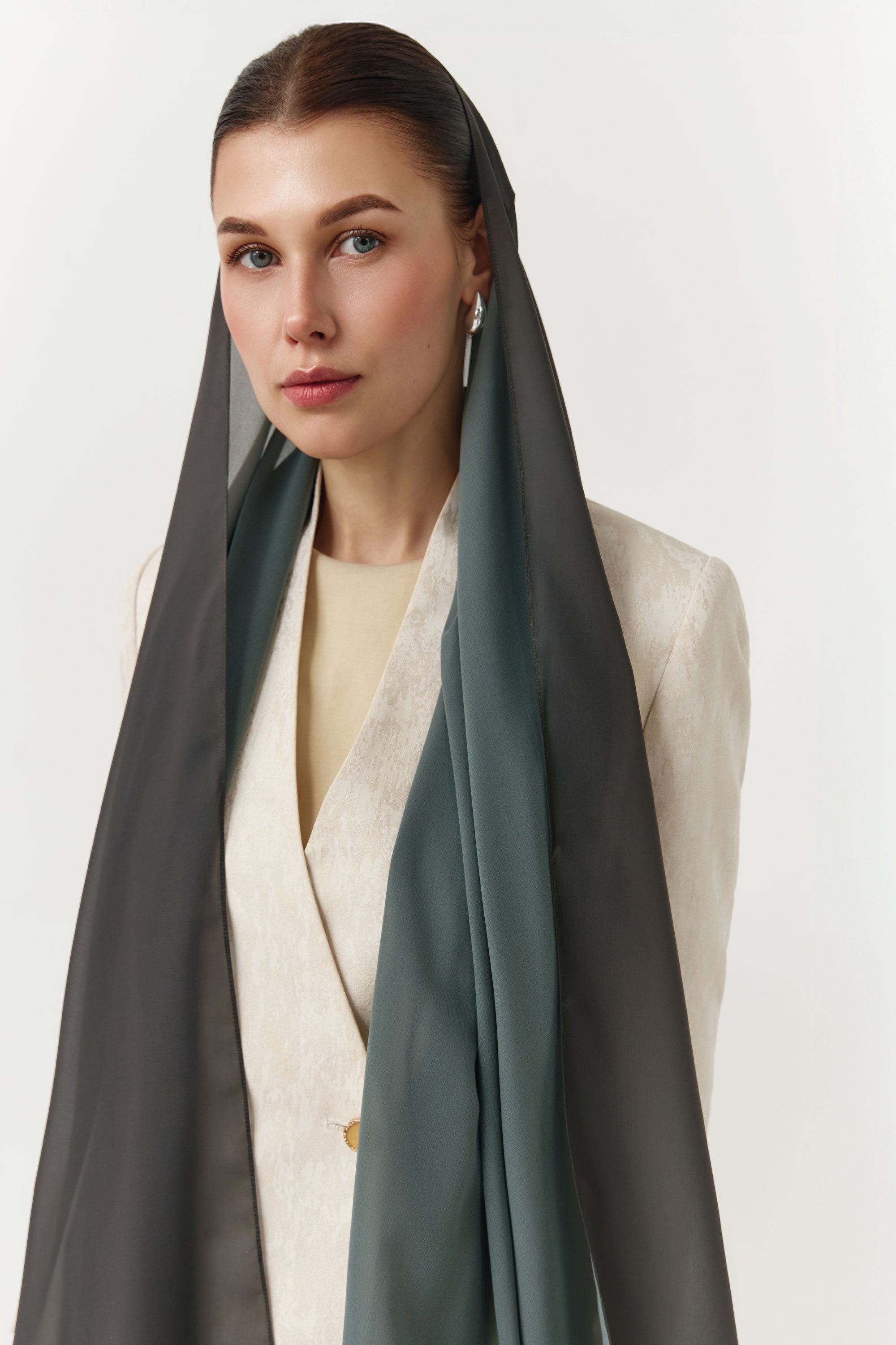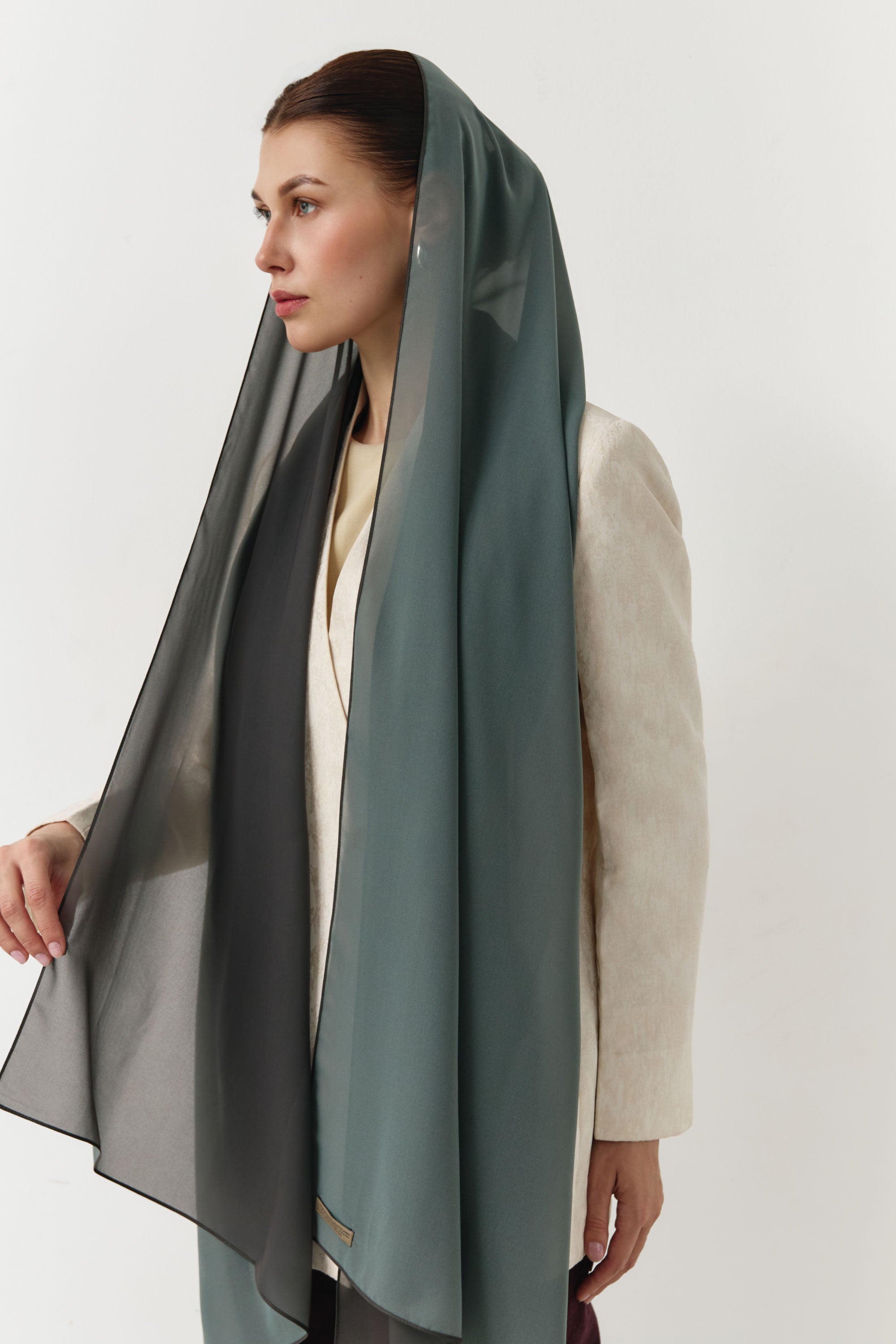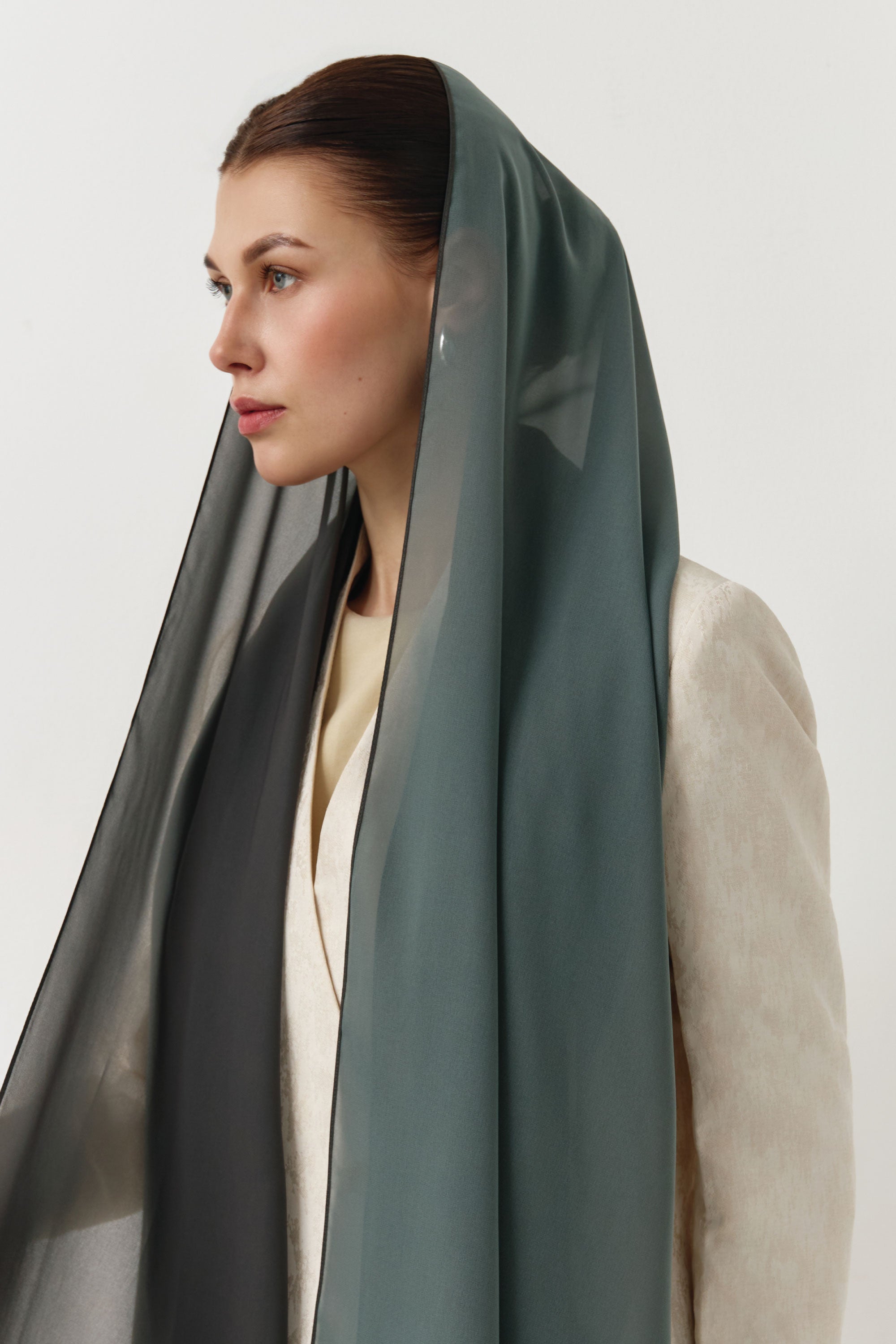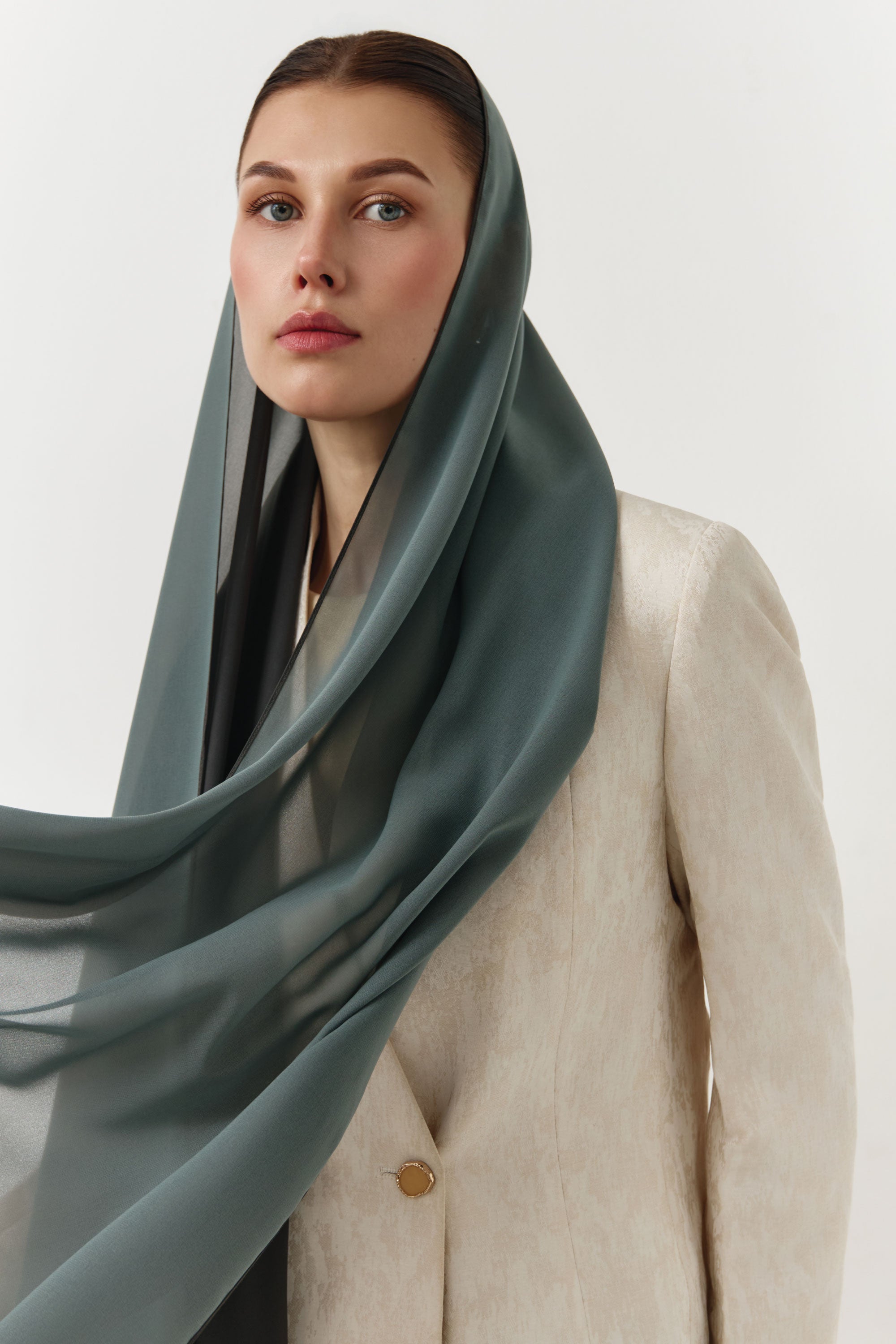Luxury double-sided chiffon hijab made from the finest Japanese fabric, featuring an elegant two-tone design.